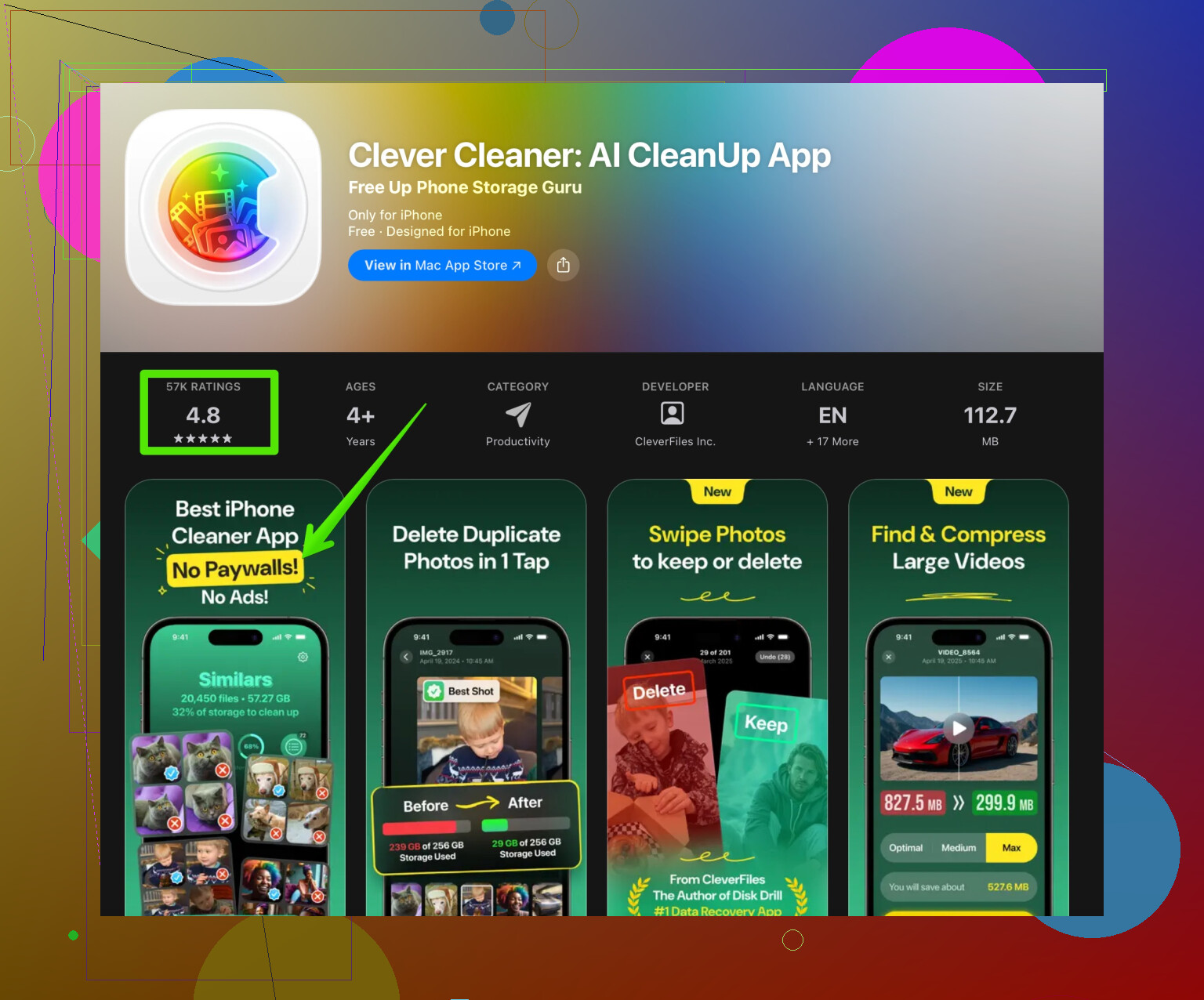 liberar espaço no armazenamento do iPhone com o Clever Cleaner.