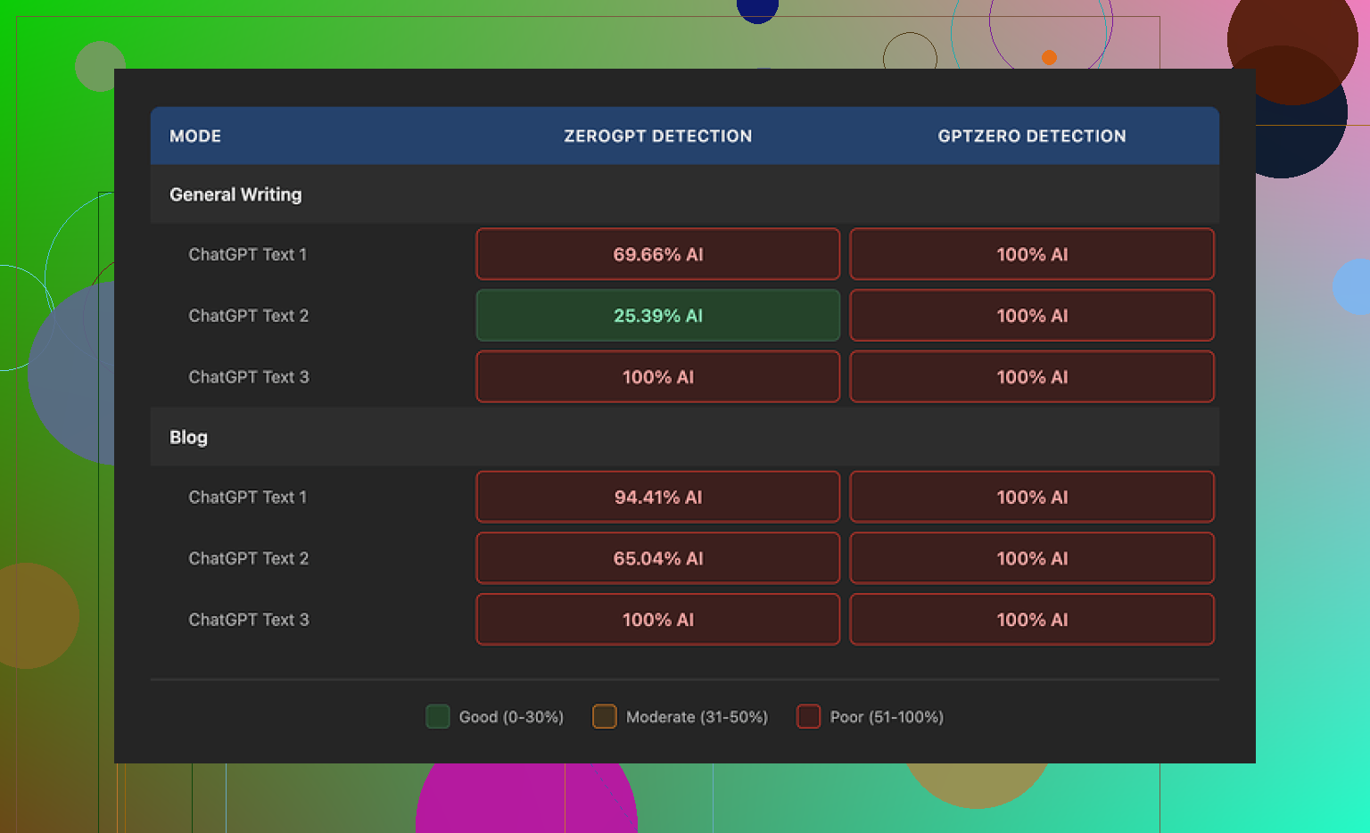 The problem showed up once I ran the outputs through detectors. The feature list looked good. The results did not. In my tests, GPTZero flagged every output as 100% AI in both General Writing and Blog mode. ZeroGPT bounced around more, somewhere between roughly 25% and 100%, depending on the passage. So if your main goal is getting past AI detection, this one felt weak fast.
