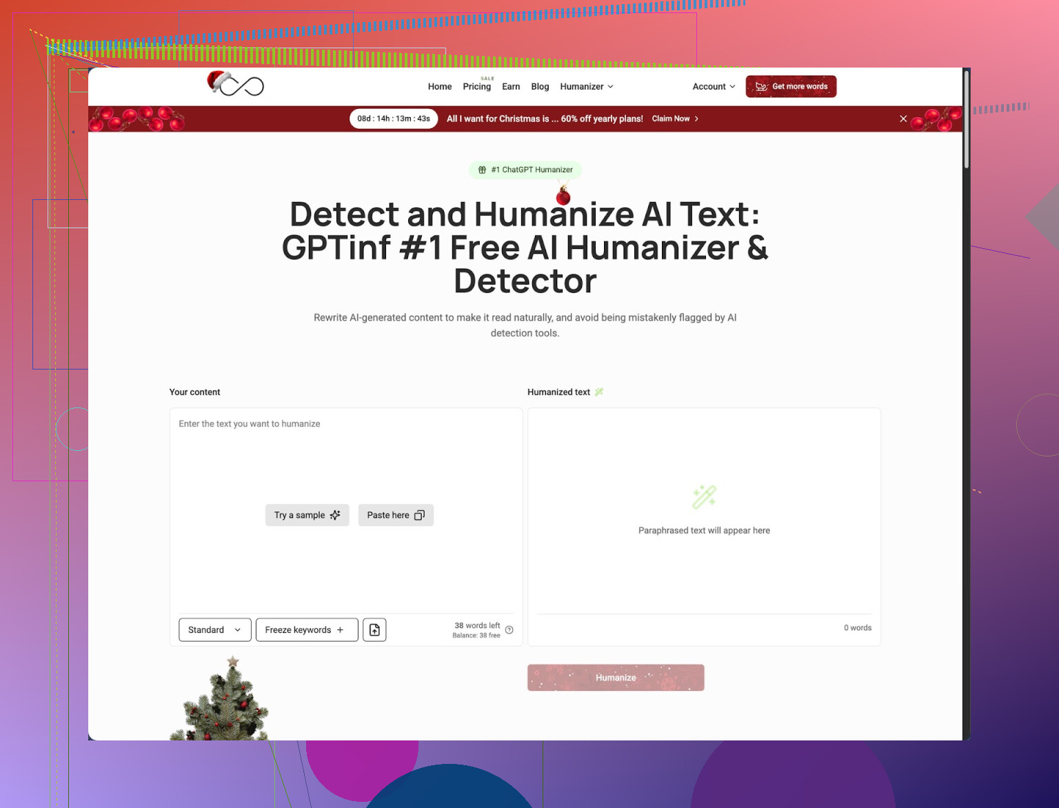 Compared to GPTinf, Clever AI Humanizer is more useful when your goal is “make this sound like my usual blog voice without wrecking my SEO terms.” GPTinf is more like a safer Grammarly with marketing claims.