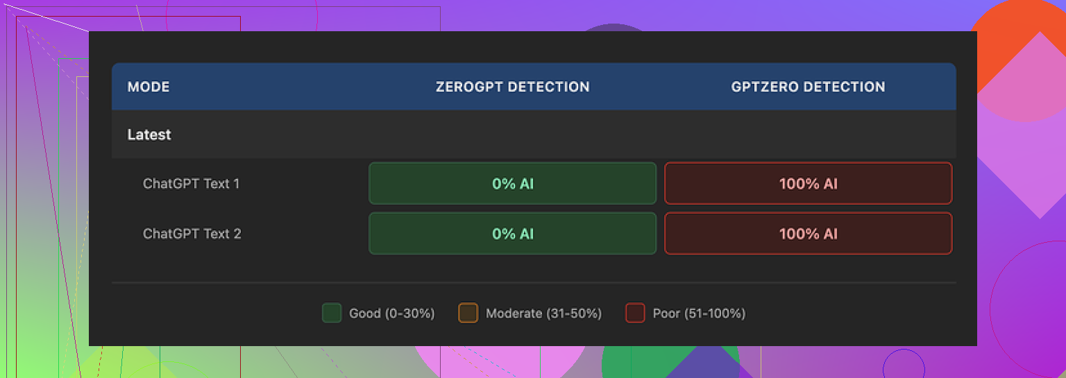 - Paste the outputs yourself into external detectors, especially GPTZero, rather than relying on the integrated checker.