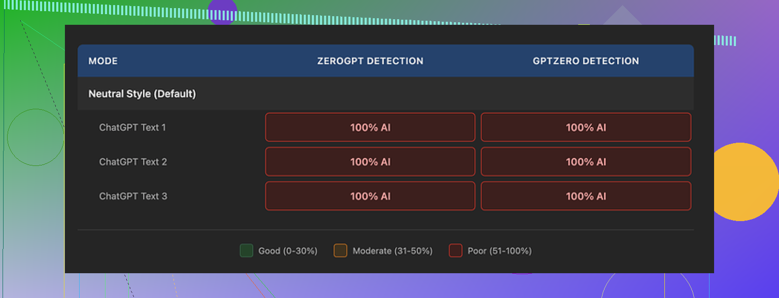 So from the angle of “I want something to help me bypass AI detectors,” the performance was flat. Zero movement in the numbers.