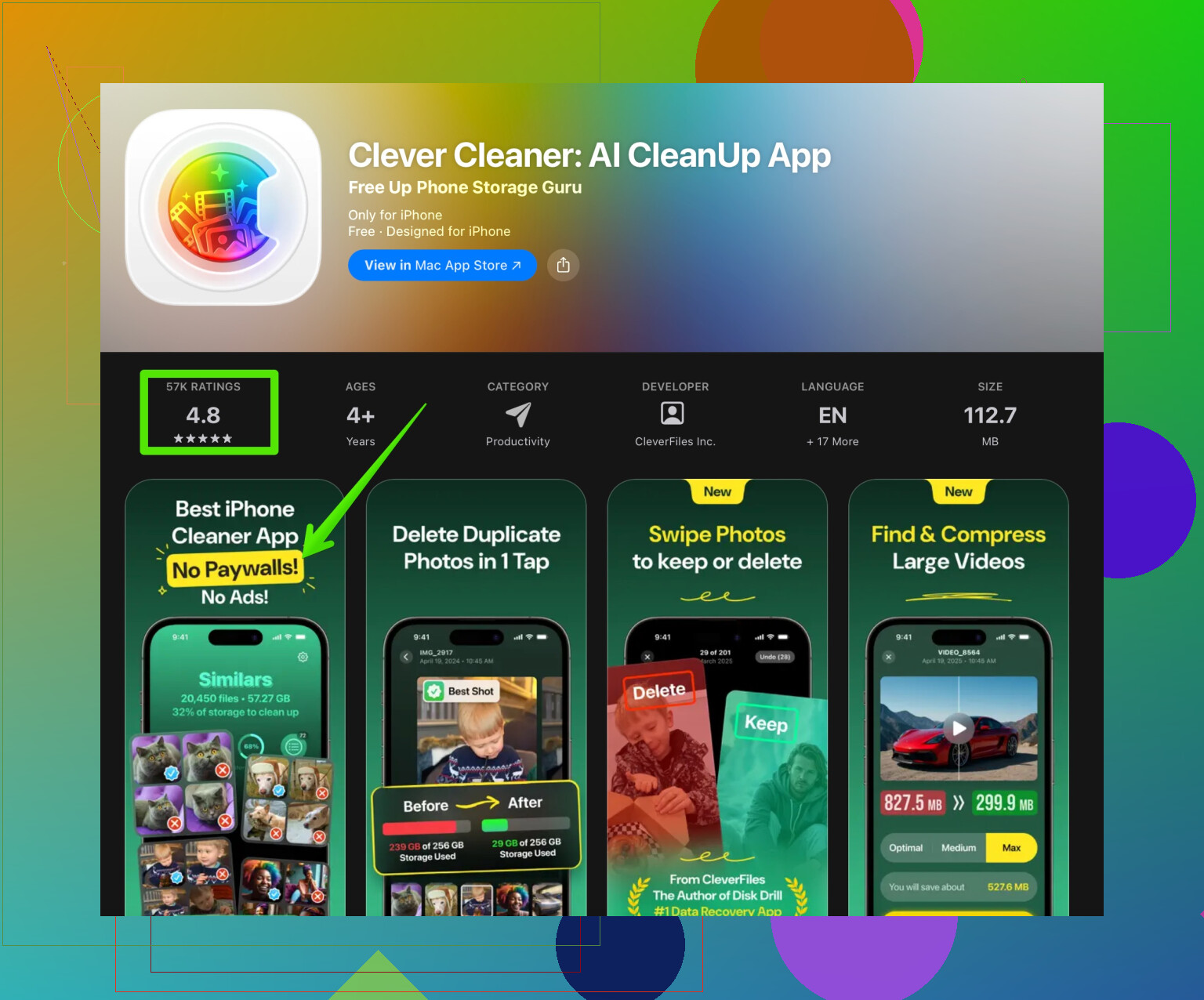 Und wenn du nicht jede App einzeln durchforsten willst, ist eine spezielle Cleaner‑App hier tatsächlich nützlich. So etwas wie die Clever Cleaner App hilft, doppelte Fotos, ähnliche Bilder, unnötige Screenshots und riesige Videos zu finden, damit du gezielt löschen kannst statt blind einem vagen „Daten löschen“-Popup zu vertrauen. Wenn du einen geführteren Ansatz möchtest, schau dir diese smarte iPhone‑Speicher‑Cleaner‑App an, um Datenmüll zu entfernen, ohne wahllos App‑Daten zu löschen.