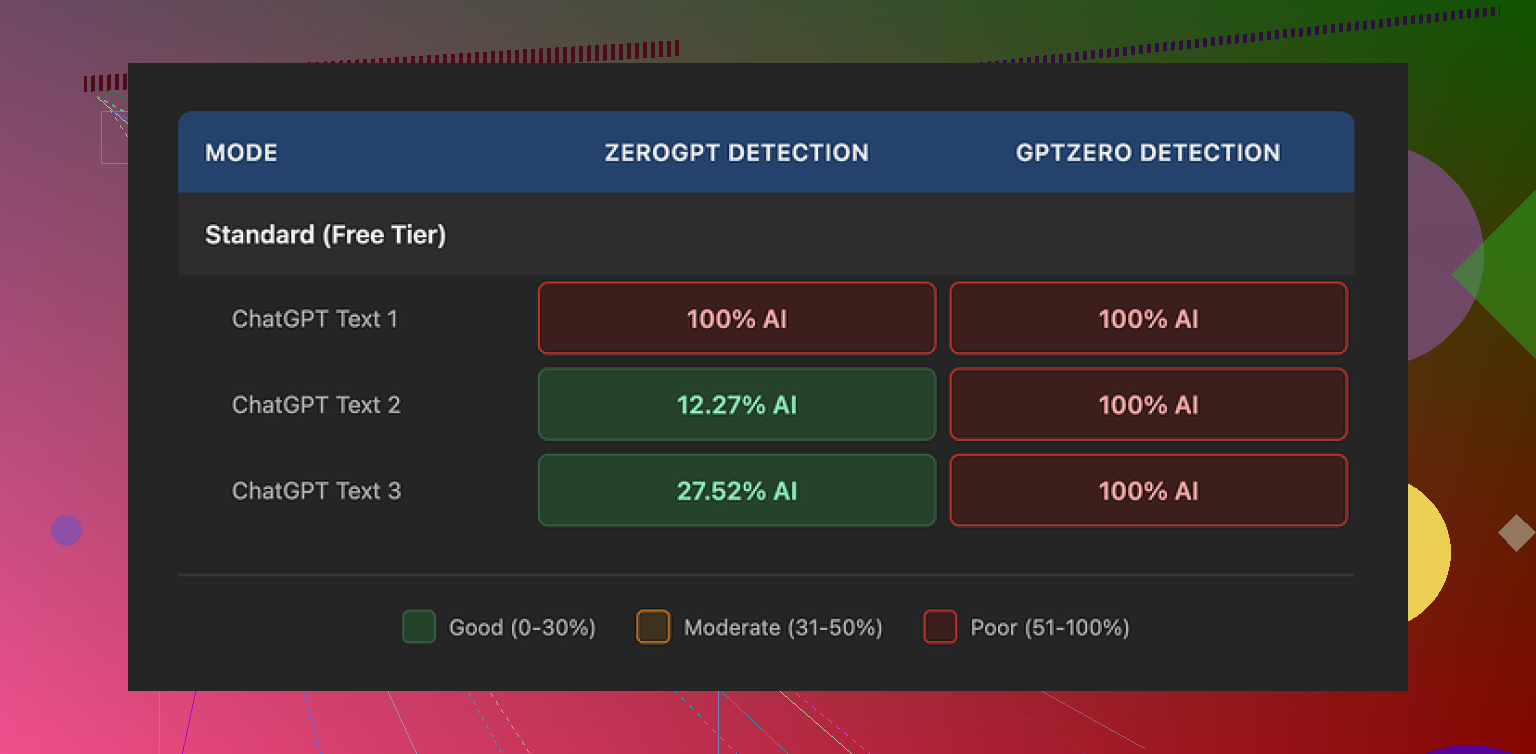 I did not see those extra tones magically fix detection issues in any test, though I did not run some 100-sample benchmark or anything like that. From what I saw, you pay more, you still land in “100% AI” territory on GPTZero.